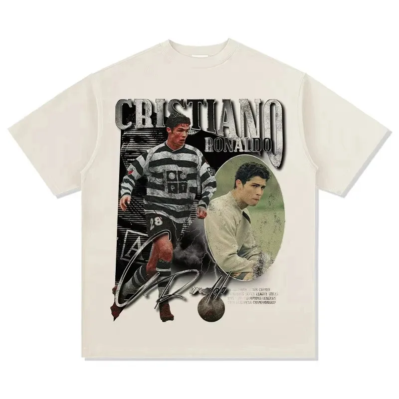 Featuring a printed pattern of football star Cristiano Ronaldo, this T-shirt adds a sporty touch to your casual look.